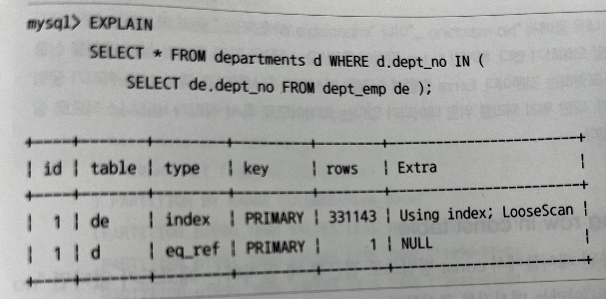 - 세미 조인의 LooseScan 최적화 전략이 사용될 때
