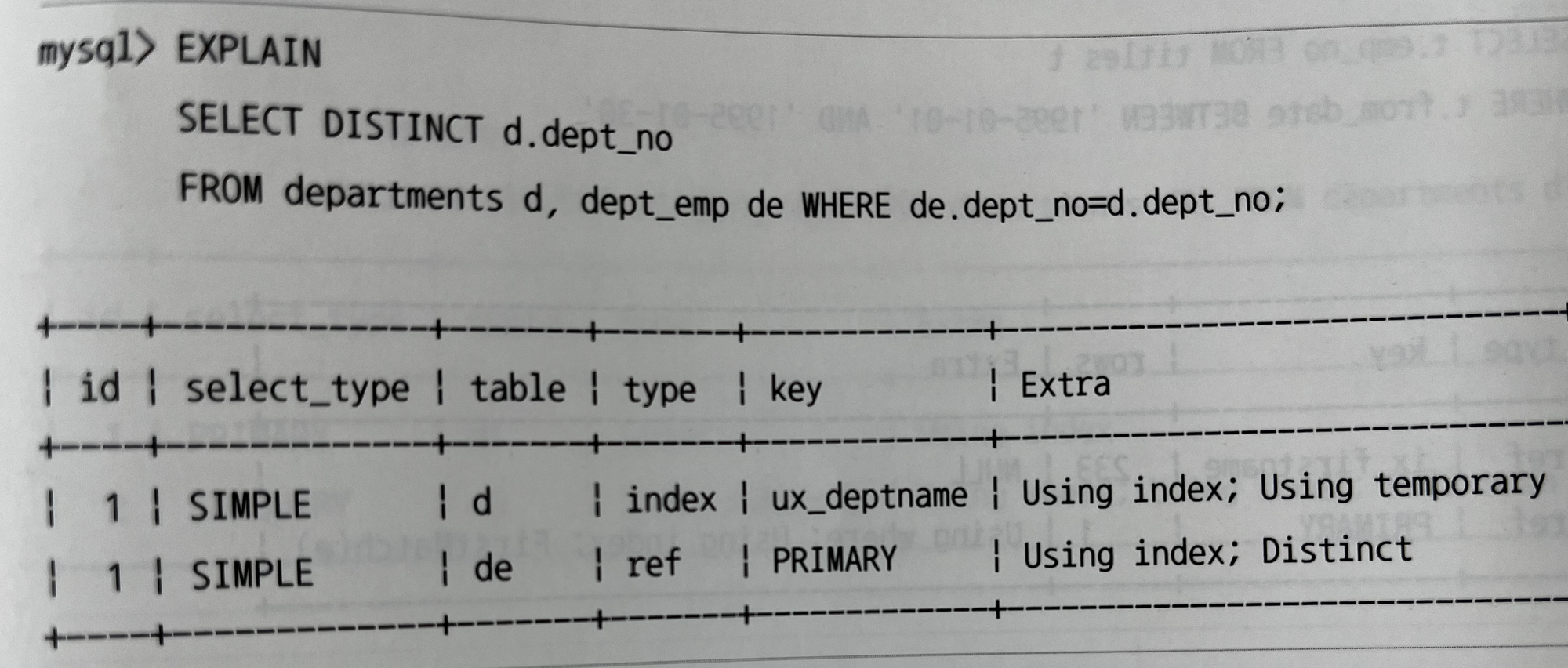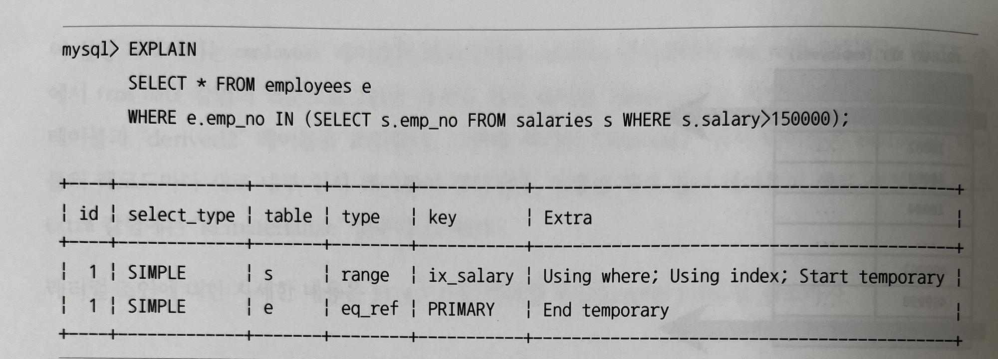 - 세미 조인 최적화 중에서 Duplicate Weed-out 최적화 전략이 사용될 때