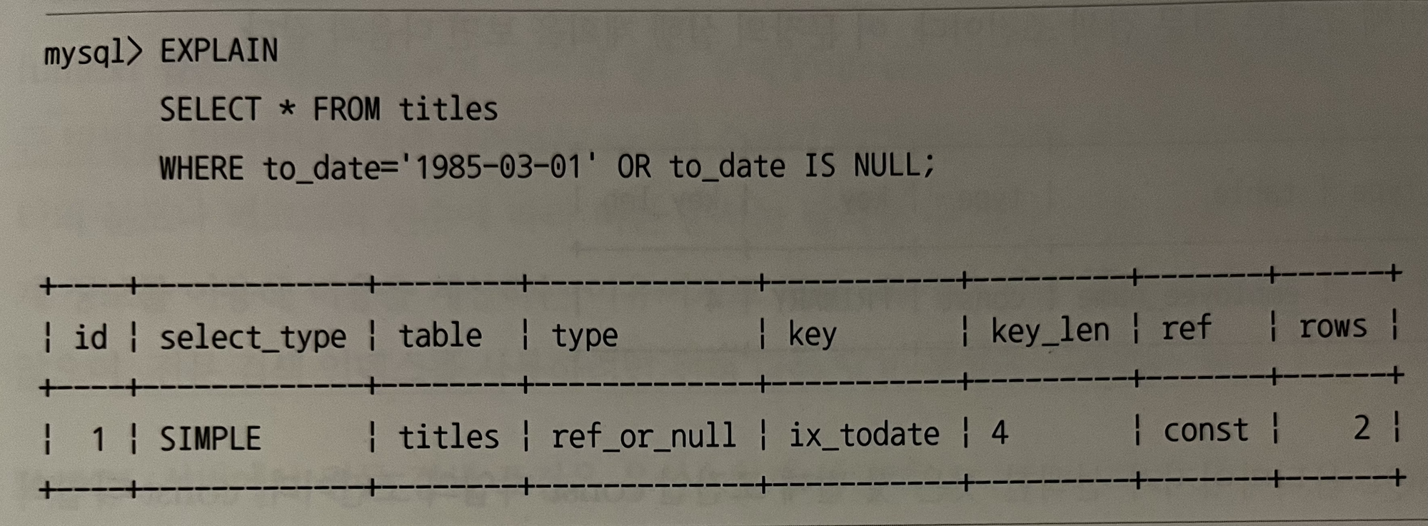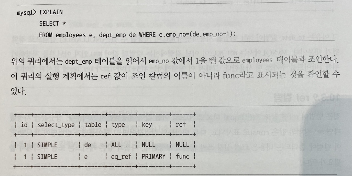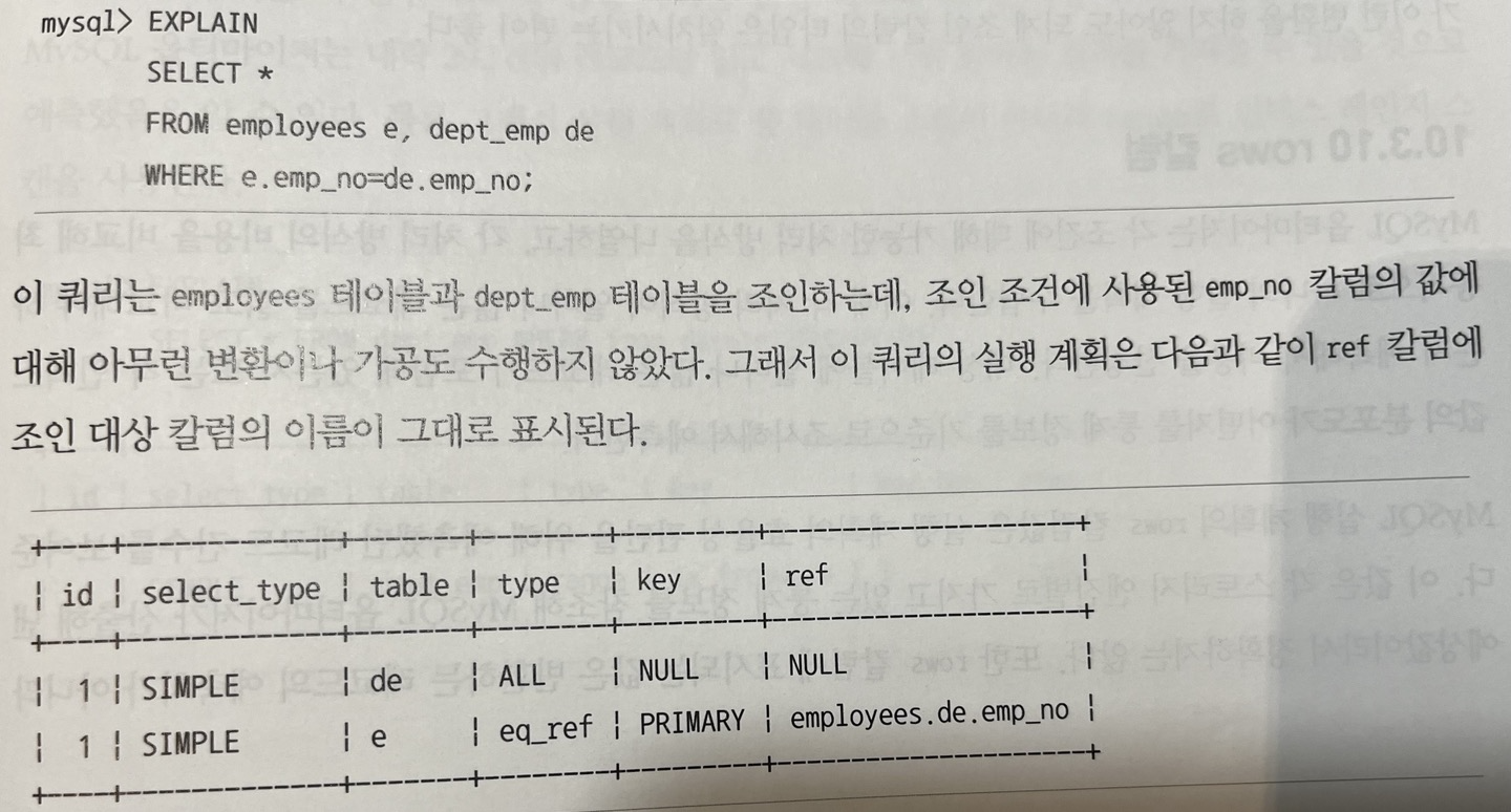 - EXPLAIN 명령의 결과로 출력되는 실행 계획이 어떤 접근 방법을 사용하여 최적화를 수행하는지, 그리고 어떤 인덱스를 사용하는지 이해하는 것이 중요하다.
