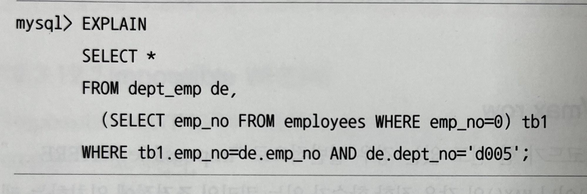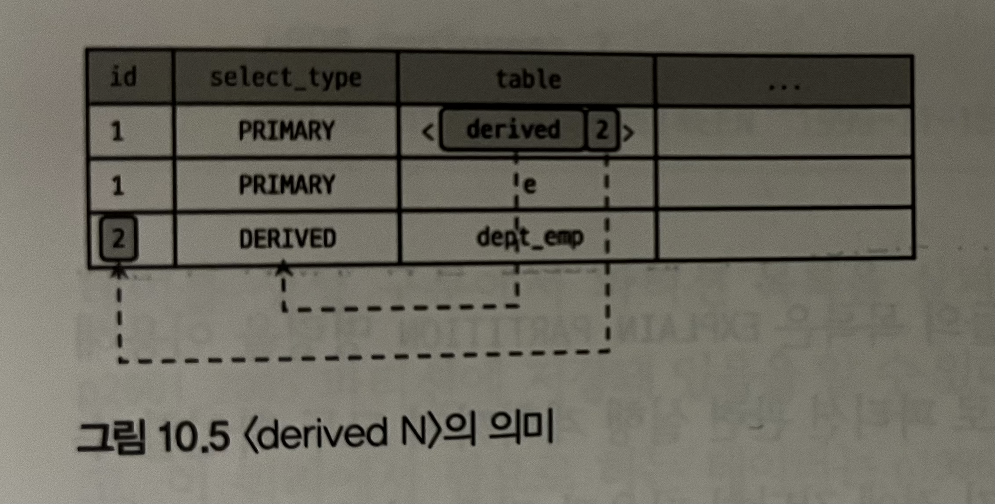 - FROM절에 사용된 서브쿼리는 select_type이 DERIVED로 표시된다.