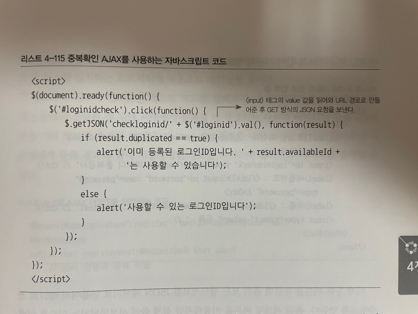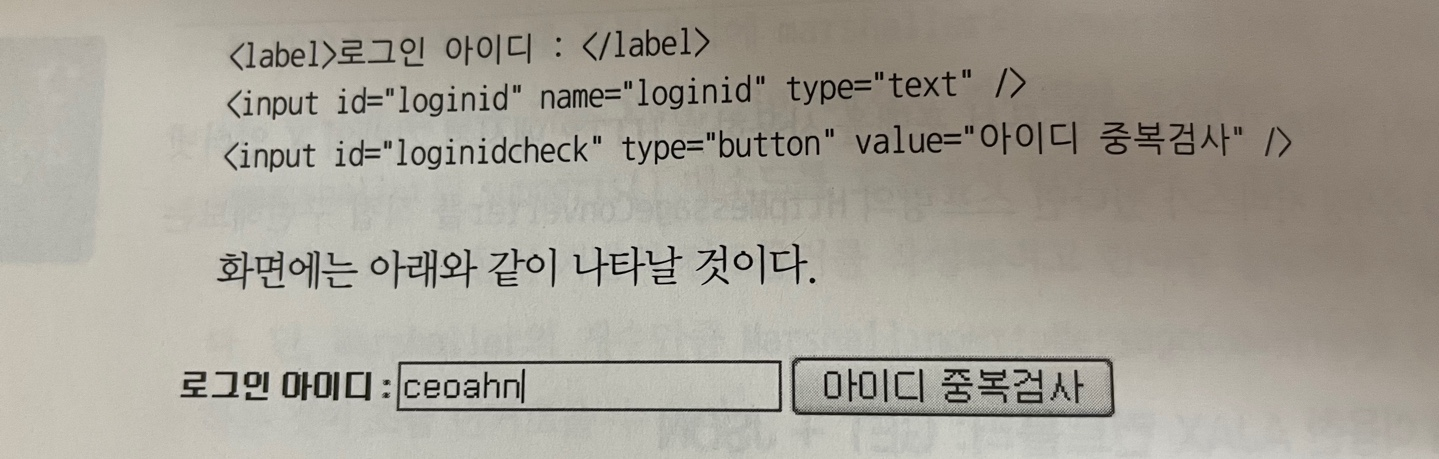 - 예제 : 사용자 등록 화면에서 폼을 서브밋하기 전에 아이디 중복검사하는 기능