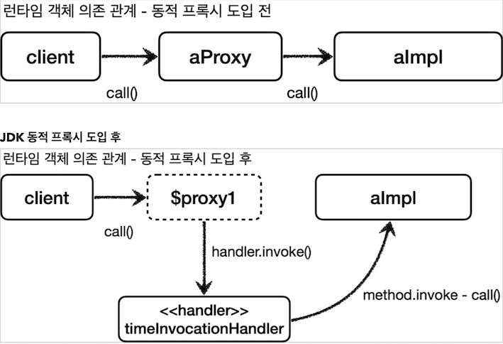 - JDK 동적 프록시는 말 그대로 런타임에 동적으로 프록시를 생성해준다.
